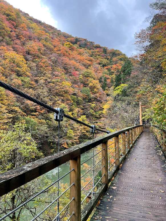 透き通るような川と紅葉のコントラストが見事で、遊歩道を歩くだけでも心が癒やされます。