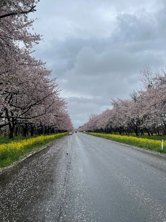 大潟村の「桜・菜の花ロード」は、約11キロにわたり約4,000本の桜と菜の花が織り成す美しい景色が楽しめるスポットです。