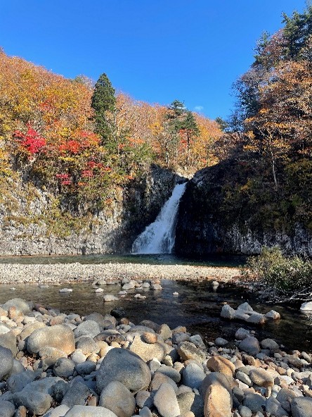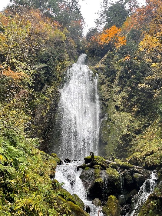 法体の滝は鳥海山の麓にあり、水量も多く迫力のある滝と緑の景観が広がります。