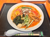 ツルッとした麺にコクのあるピリ辛ダレがからんで、具材も盛りだくさん!