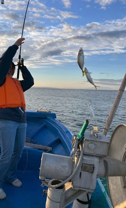 最後にご紹介するのは、実習期間中に船釣りで釣ったアジです 🐟